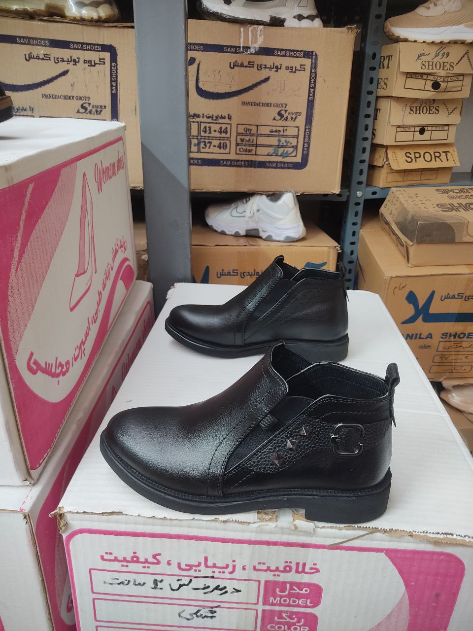 بوت پرچی زیره پیو سمباده ای با جنس رخ چرم و استر پفکی نرم راحت با قالب استاندارد.